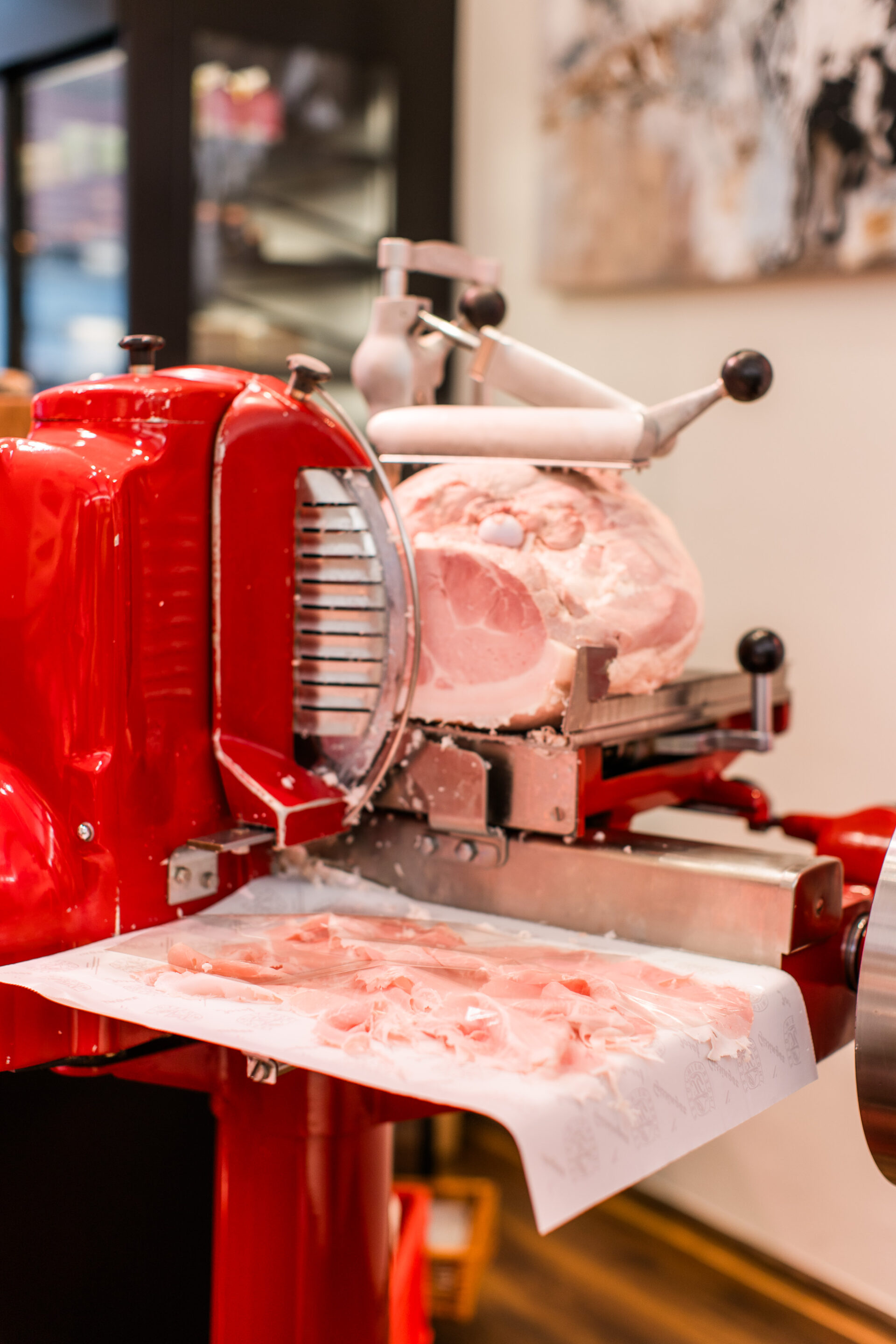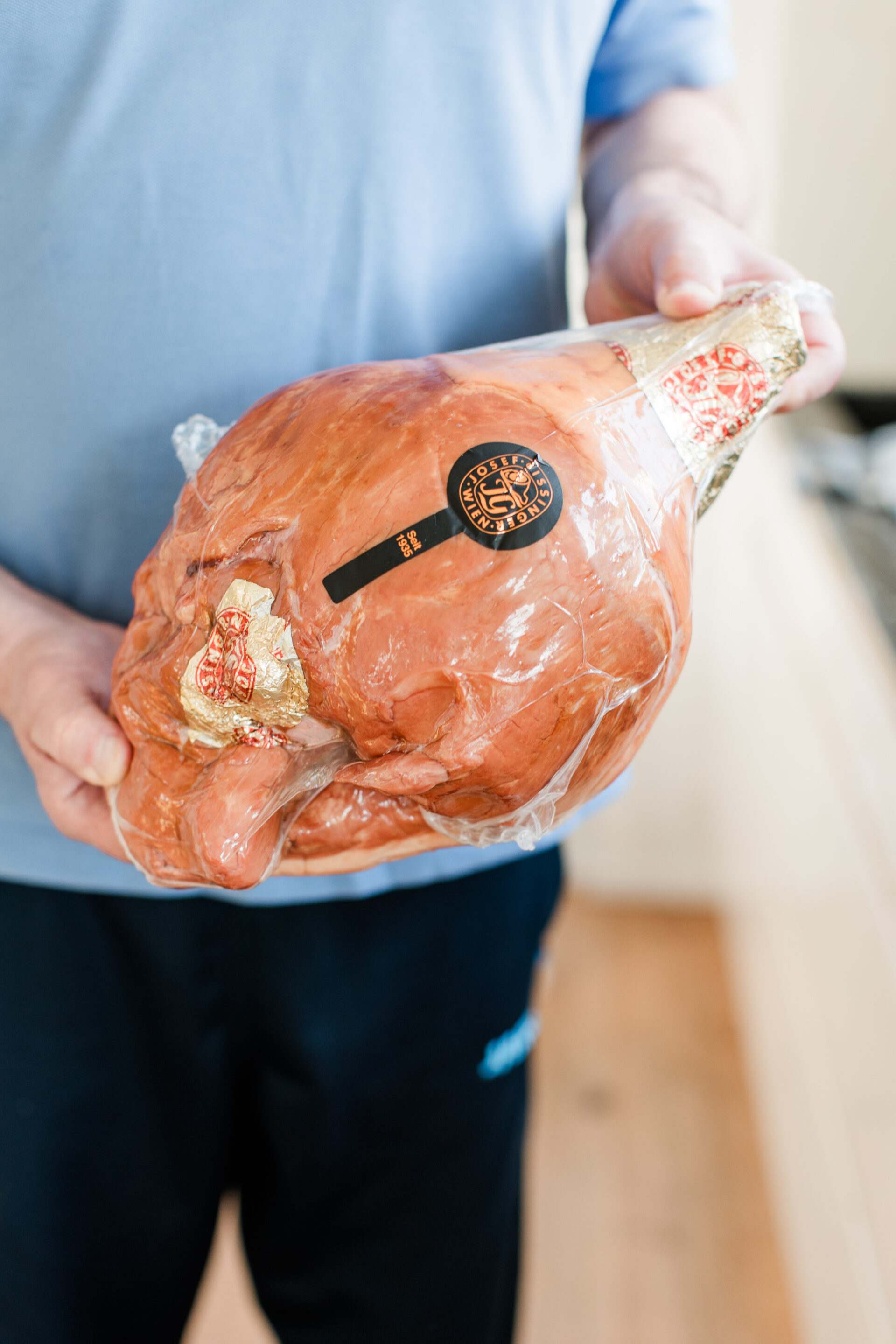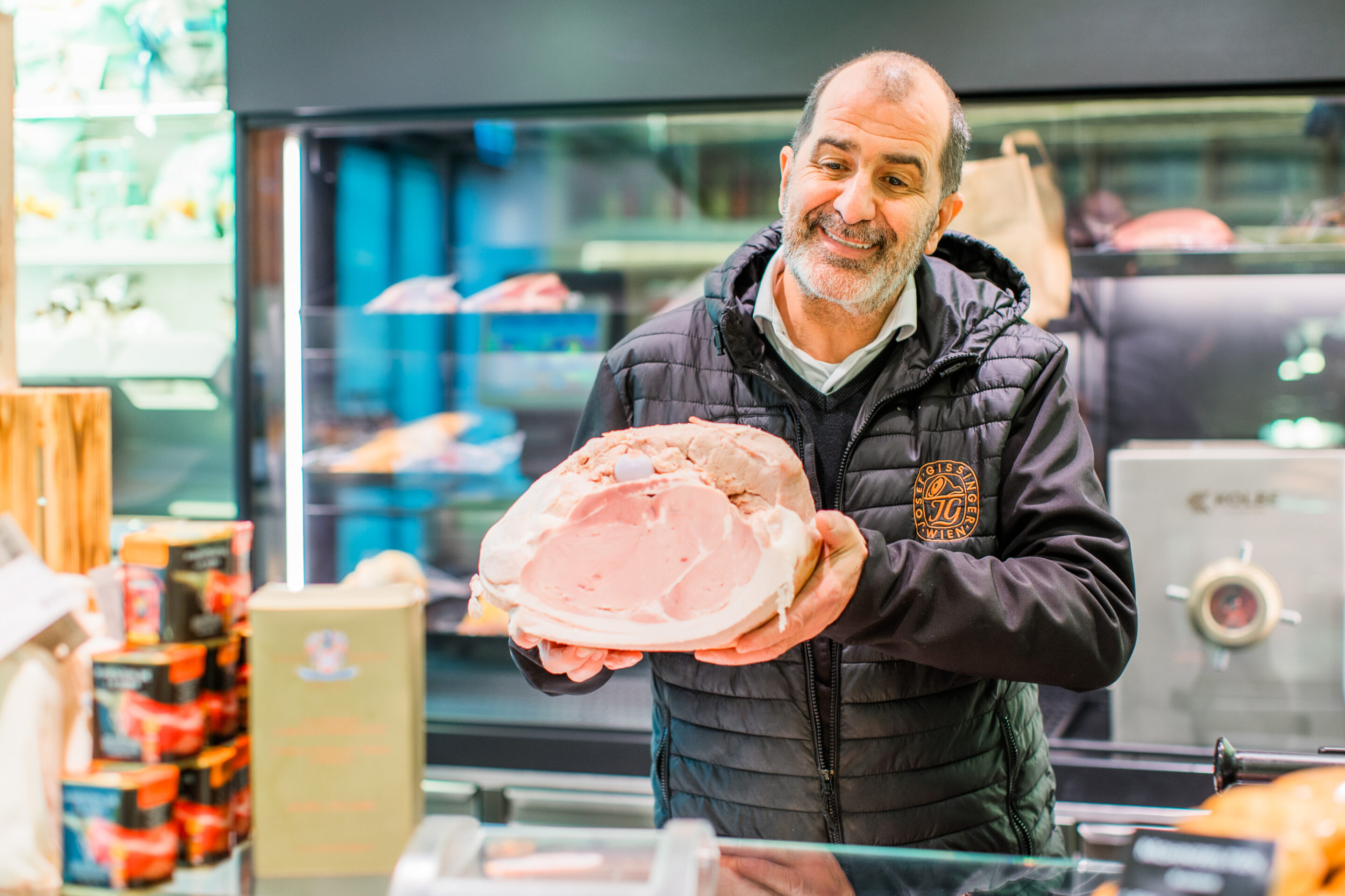 Nicht jedes Bein darf bei Gissinger übrigens über die Schwelle treten: „Wir erhalten die ausschließlich österreichischen Schweinekeulen von ausgesuchten Lieferanten, die auf unsere Qualitätskriterien achten. Die Schlögeln müssen eine gewisse Fettauflage aufweisen, dürfen also nicht zu mager sein, und stammen von Schweinen aus Niederösterreich und der Steiermark, die mit einem Gewicht von 90 bis 100 kg schonend geschlachtet werden.“
