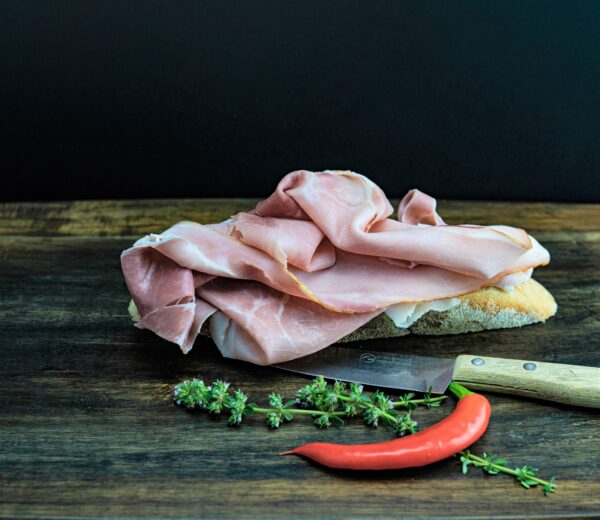Zutaten: Schweineschlögel, Wasser, Kochsalz (Konservierungsstoff: Natriumnitrit), Gewürze
