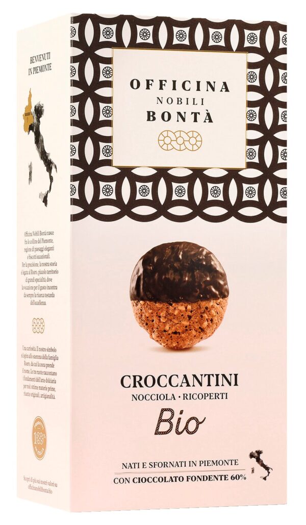 Knusprige Makronen mit Stückchen von Haselnüssen und zur Hälfte mit dunkler Schokolade überzogen sind ein besonders nussiges Vergnügen aus dem Piemont. Sie sind luftig und schmecken gut zu einem Glas Frizzante.