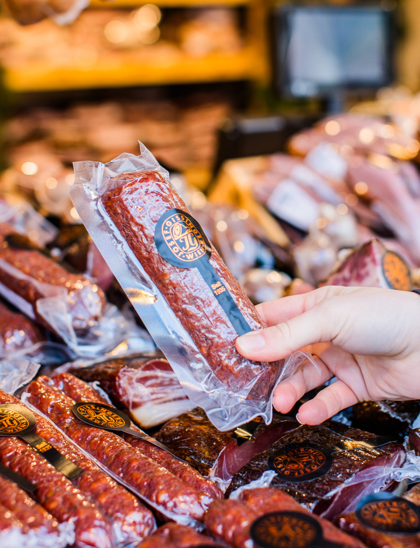 Zutaten: Schweinefleisch, Hirsch, Speck, Kochsalz (Konservierungsstoff: Natriumnitrit), Glucose, Gewürze, Maltodextrin, Diphosphate, Mononatriumglutamat, Natriumascorbat
