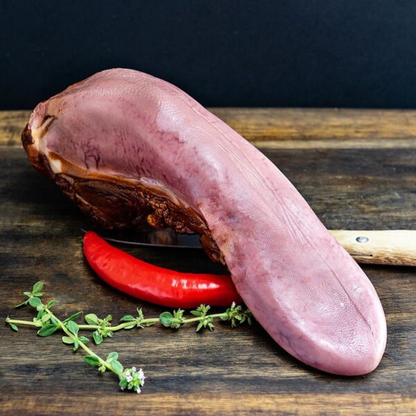 Zutaten: Kalbszunge, Trinkwasser, Kochsalz (Konservierungsstoff: Natriumnitrit), Stabilisator: Di- und Triphosphate, Antioxidationsmittel: Natriumascorbat, Geschmacksverstärker: Mononatriumglutamat, Gewürze,