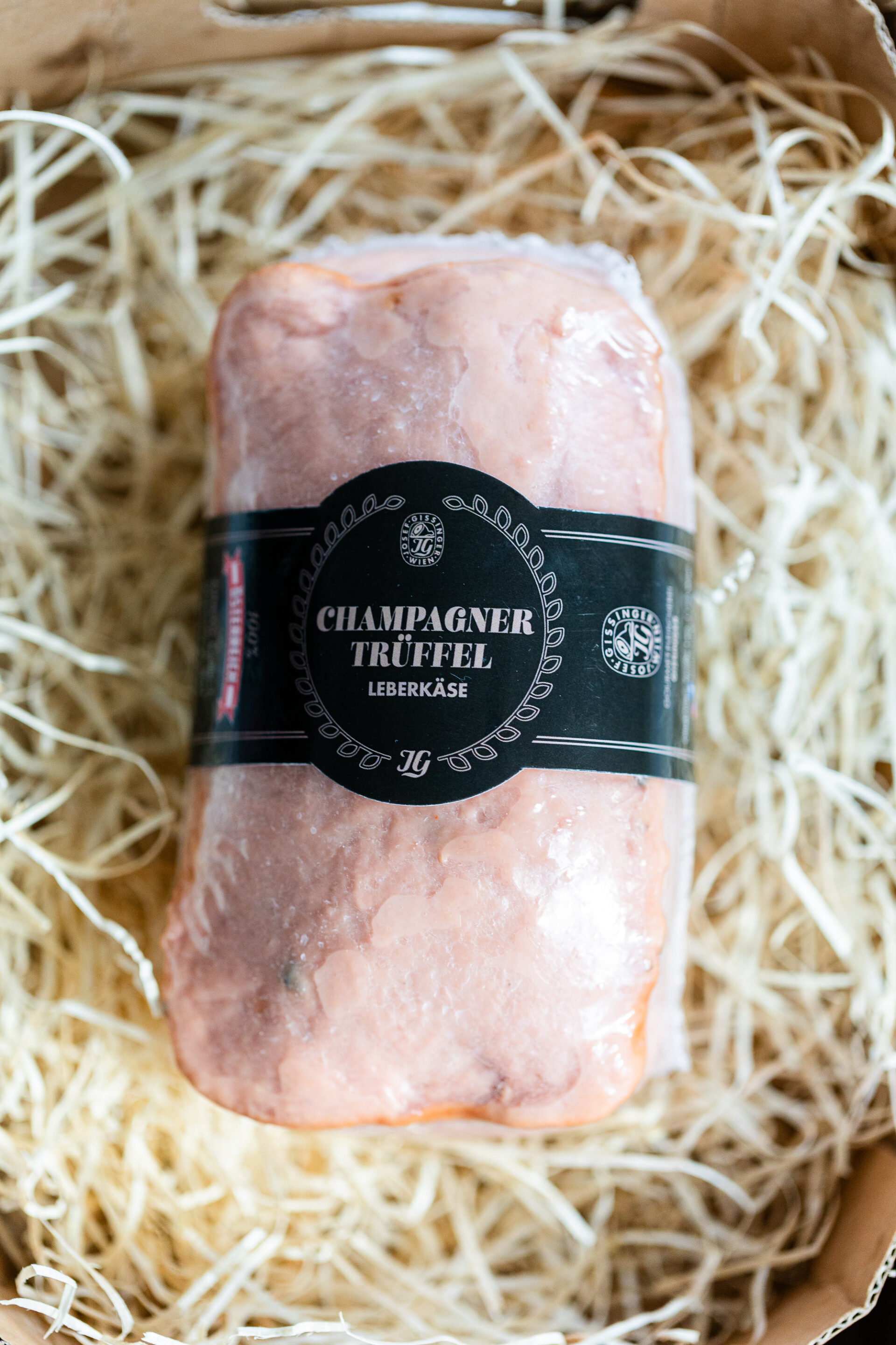Zutaten: Schweinefleisch, Rindfleisch, Speck, Trinkwasser, Konservierungsstoff: Natriumnitrit, Antioxidationsmittel: Ascorbinsäure, Geschmacksverstärker: Mononatriumglutamat, Stabilisator: Diphosphate, Champagner, Trüffel, Gewürze, Kartoffelstärke