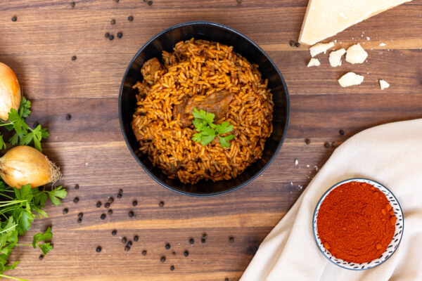 Zutaten: Schweinefleisch 50%, Reis 25%, Zwiebel, Wasser, Stärke (WEIZEN), Salz, Gewürze