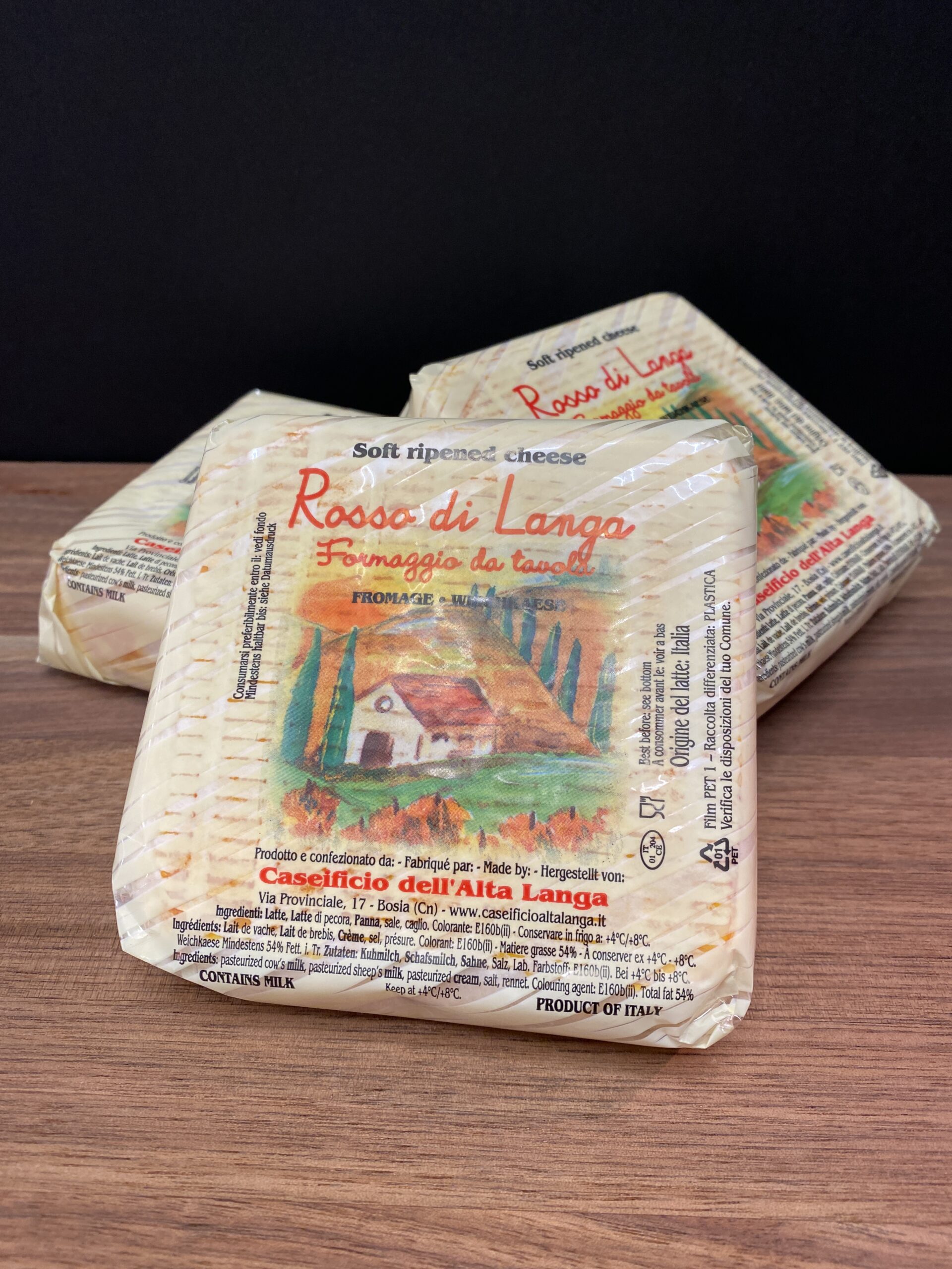 Milder Geschmack mit leichten Gras- und Heunoten, zartstrohgelber Teig und weiß – rötliche Naturrinde, der er seinen Namen verdankt.