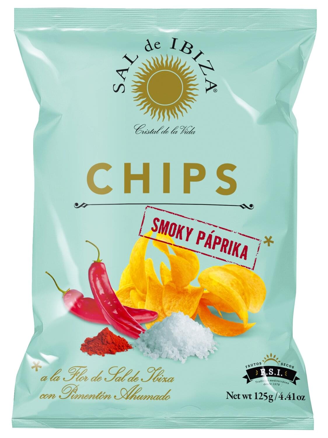 Die knusprigen Kartoffelchips von Sal de Ibiza sind mit dem beliebten Pulver der angeräucherten Paprikasorte Piementón de La Vera gewürzt. Es besitzt eine milde Schärfe und eine feine Rauchnote. Die Chips schmecken hervorragend zu einem hellen Bier und zu Sekt.